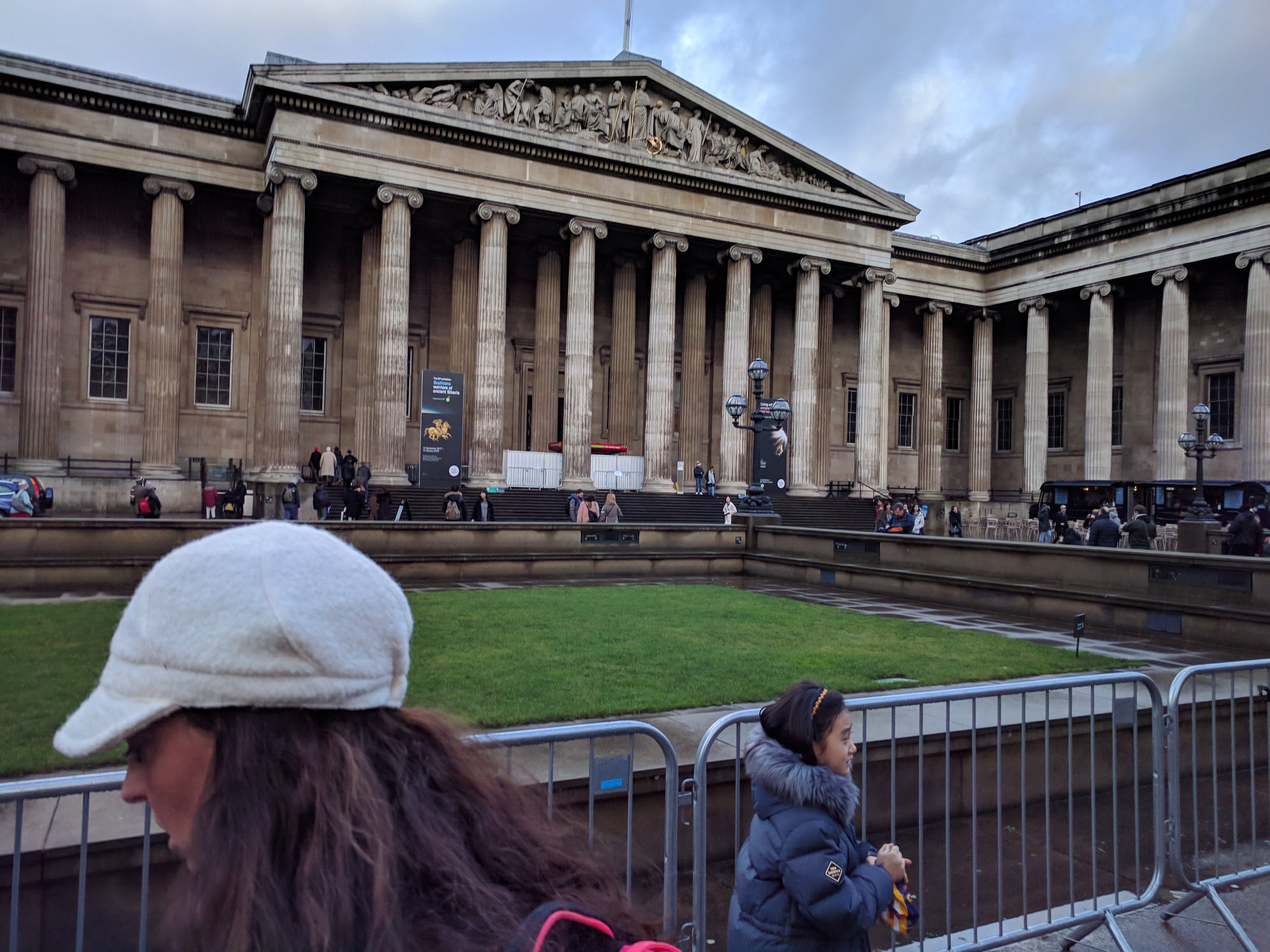 Waiting in line on a chilly London day to get in to the British Museum. Worth it.